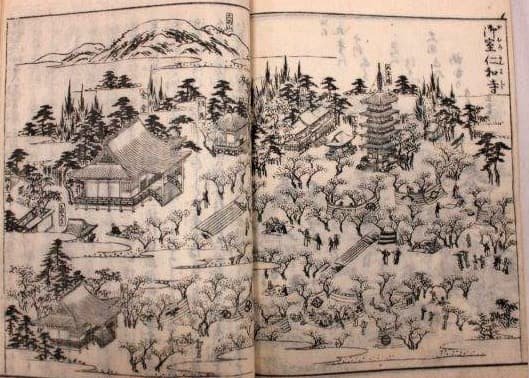 光孝天皇により発願され、888(仁和4)年に宇多天皇が創建。以来1867(慶応3)年まで代々皇室出身者が門跡を務めた宮門跡寺院であった。現在は真言宗御室派の総本山で、1994(平成6)年には世界文化遺産に登録される。1468(応仁2)年、応仁の乱によって、伽藍が焼失するが、本尊の阿弥陀三尊や宝物類は大切に守られ続け現在に伝えられている。江戸時代には、幕府によって1646(正保3)年に伽藍が再建されており、今も当時の姿を偲ぶことができる。桜の名所としても知られている。霊宝館では、創建当時の本尊である阿弥陀三尊をはじめ絵画や書跡、工芸、考古、古文書など多分野の資料を収蔵しており、春・秋の2回、一般公開している。